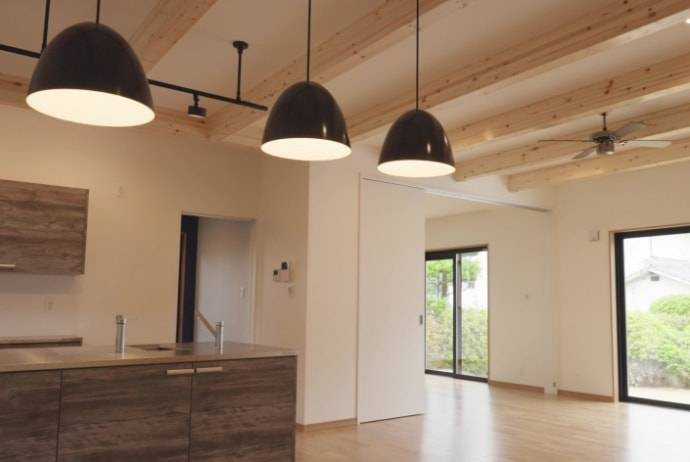 子育てファミリーからシニアまで人気が集まっている平屋建て。とてもおしゃれで個性的になっています。生活の全てがワンフロアで収まり楽な生活動線となります。